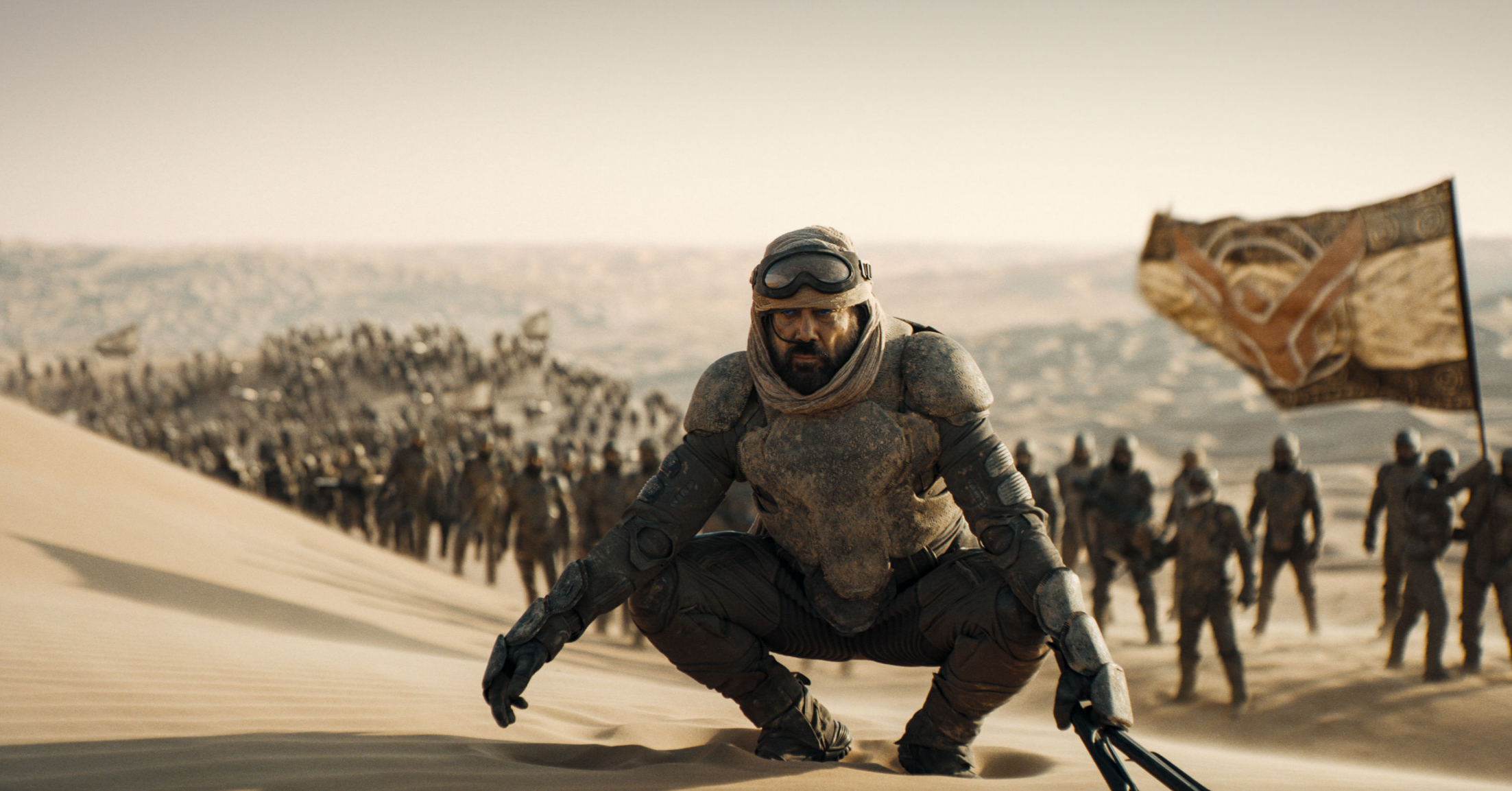 <듄2>는 <듄>에서 하코넨의 추적을 피해 사막 깊숙히 달아난 폴(티모시 살라메)이 원주민이며 뛰어난 전사들인 프레멘의 신임을 얻고, 그들의 영웅이 되어 반격에 나서는 내용을 그리고 있습니다. 당연히 배경은 전편에 이어 '모래의 행성'인 아라키스의 사막이고, 이 행성의 이름이 고대어로 '듄'이었다는 이야기도 나옵니다.