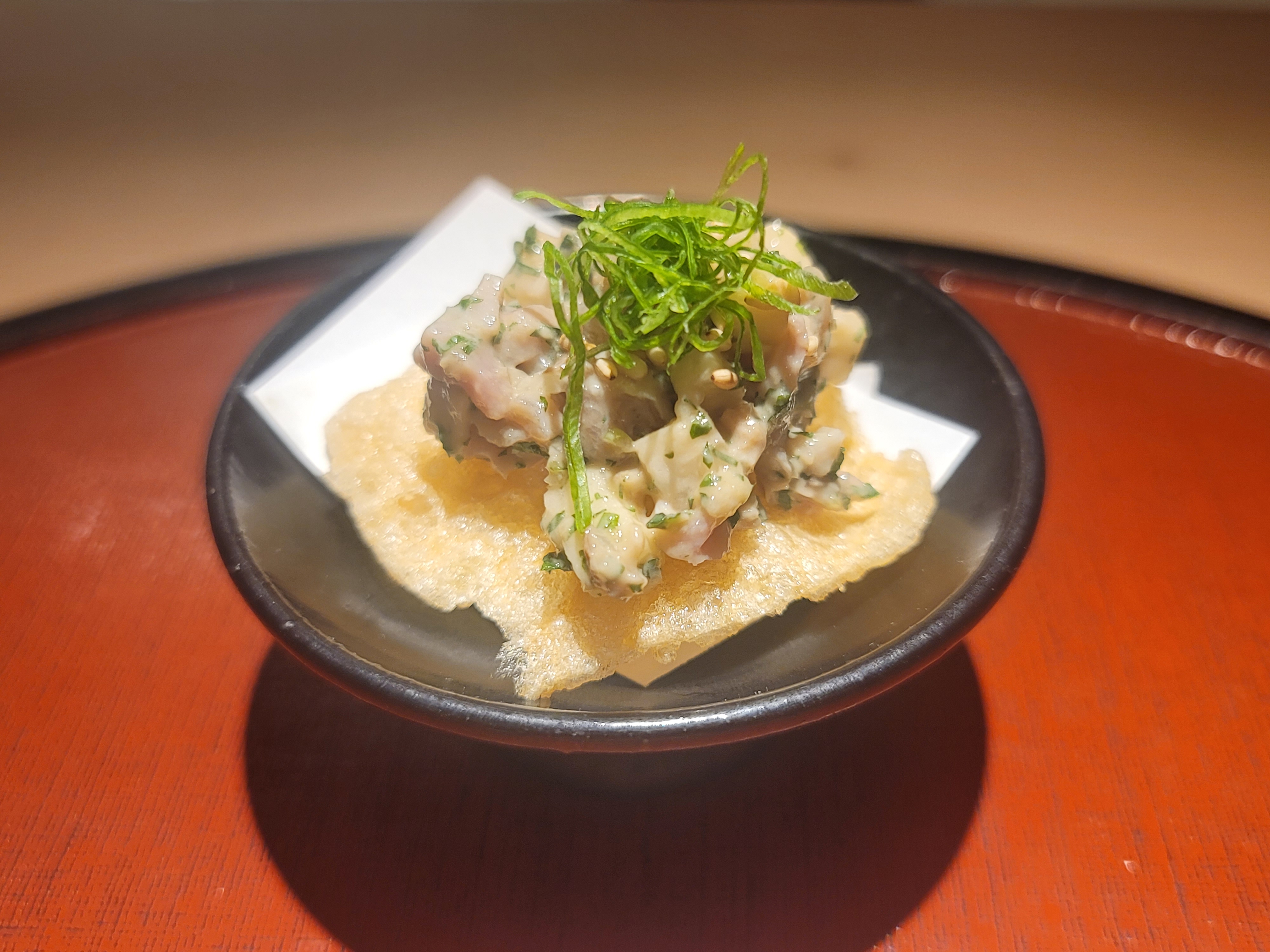 그렇게 해서 첫 접시는 '시소와 오이가 들어간 닭가슴살회 마끼'. 신선한 충격이었다. 기대가 두배로 급상승했다. 감탄. 이어서 줄줄이 감탄의 연속이다.