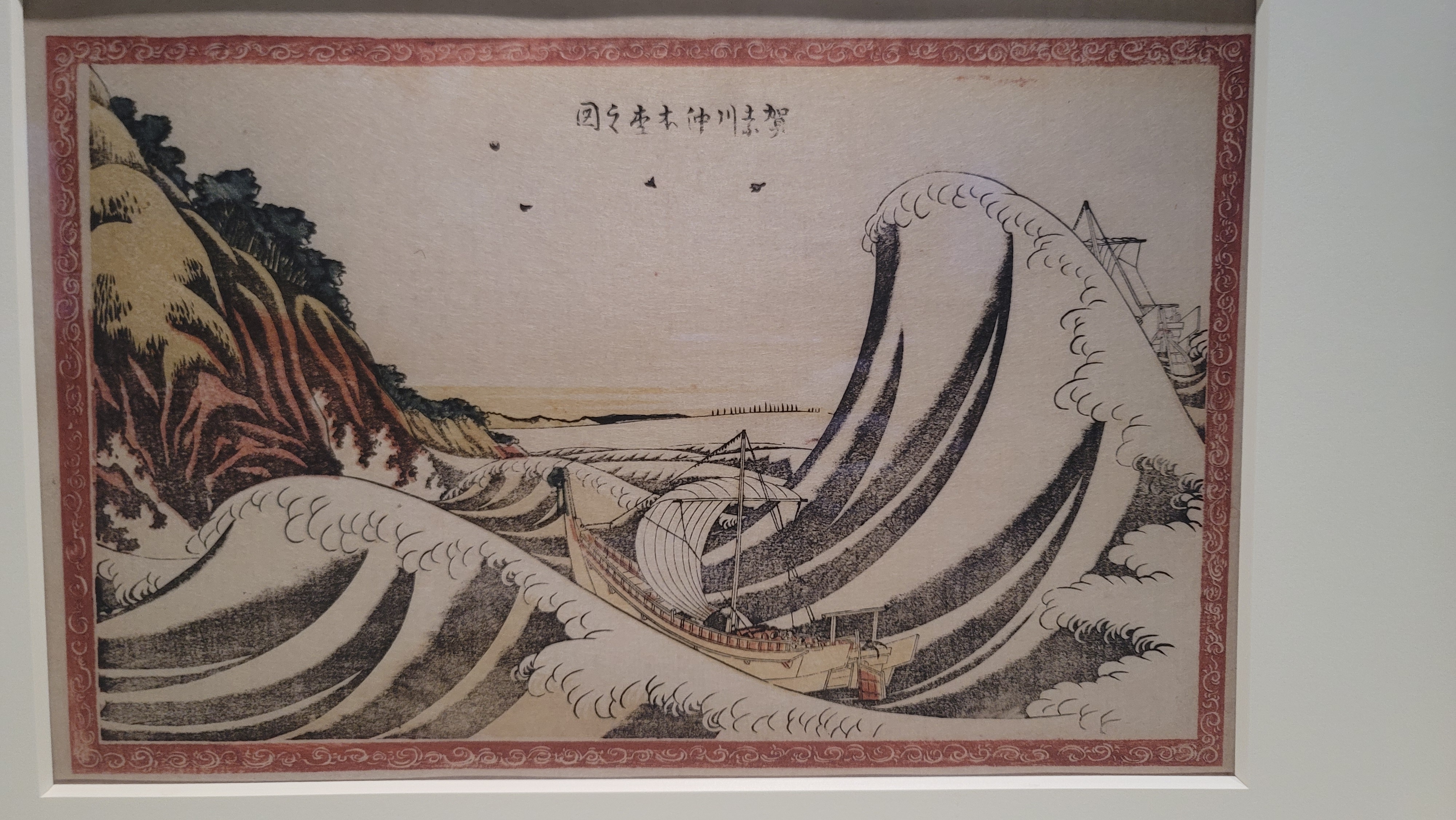 가나가와의 혼모쿠 해안 그림. 그 유명한 가나가와의 파도 그림의 자매편 쯤 되는데, 역시 레플리카.