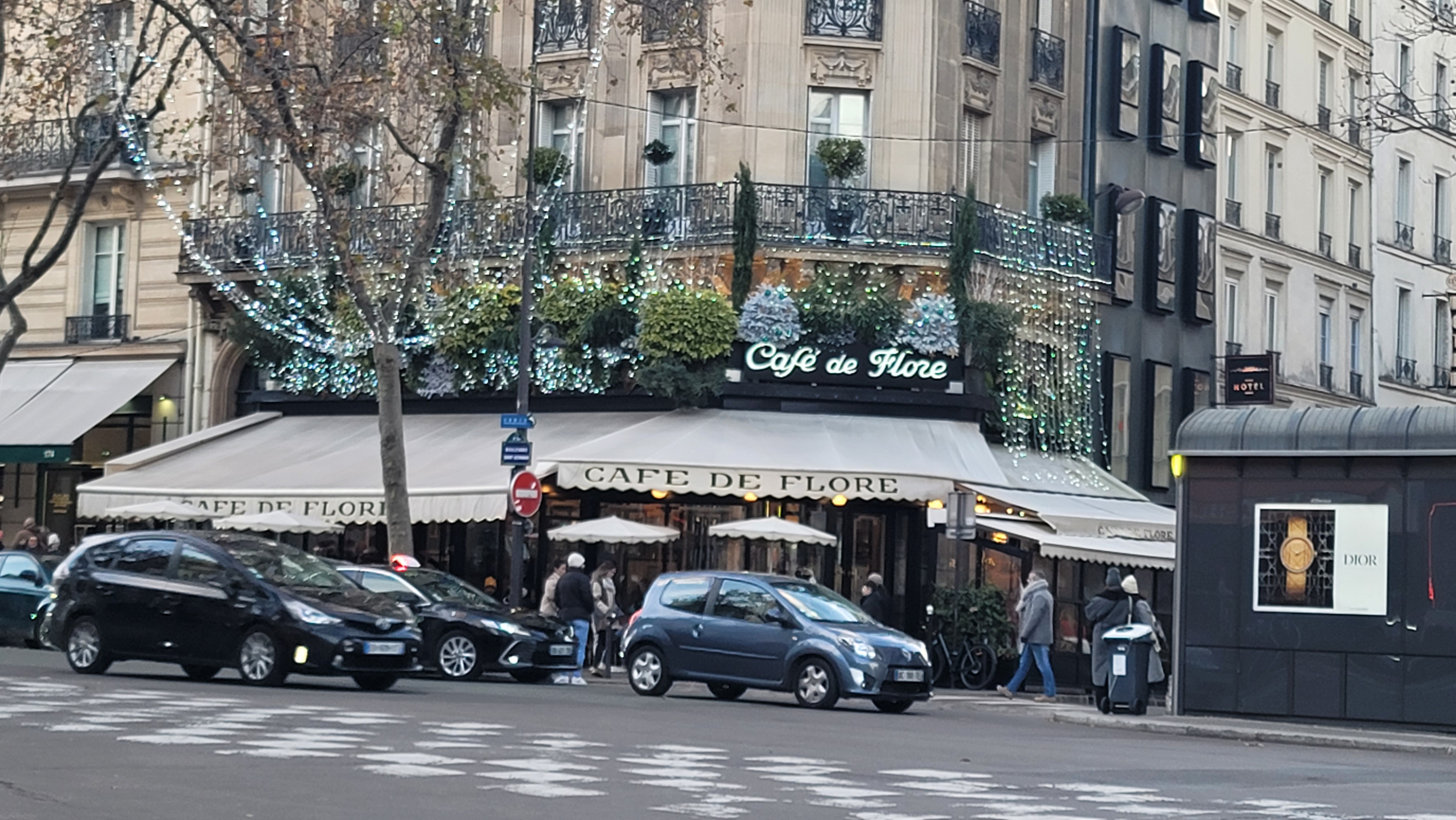 아무튼 그렇게 몇 걸음을 걷다 보니 해가 반짝. 8일 정도 파리에 머무는 동안 파란 하늘을 본게 몇번 안 되는데, 그중의 하루가 이 날이었다. 중간에 몇 군데를 더 들러 돌아보고(덕분에 에르메스 세브르 점의 위용을 봄), 어찌 어찌 하다가 예정되어 있던 카페 레 뒤 마고 Les Deux Magots에 일찍 입장.