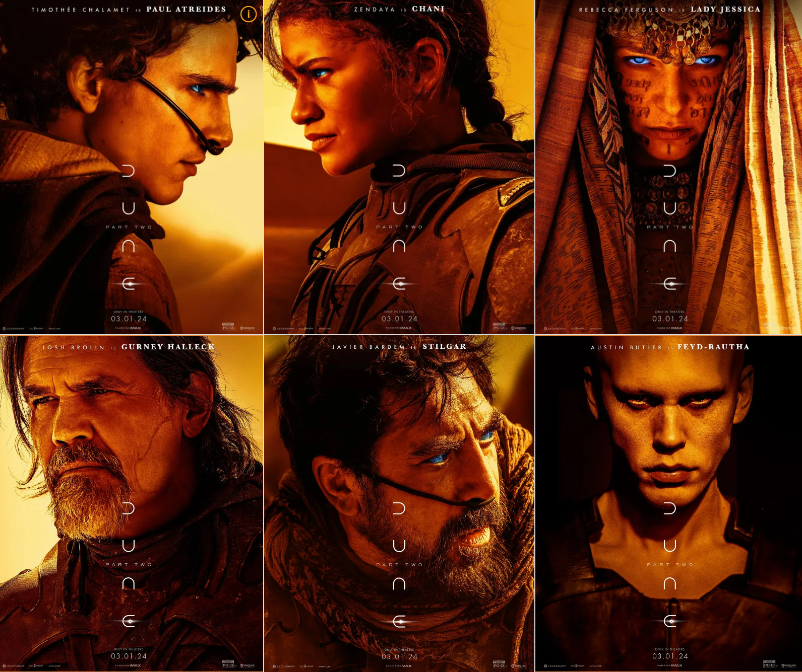 물론 처음에 언급했다시피, <듄2>는 이런 아쉬움을 충분히 덮을 만큼 훌륭한 볼거리를 제공합니다. 2시간45분 동안 그 그림만 보고 있어도 표값은 아깝지 않을 정도. 그리고 사정이 허락한다면, 가능한 한 큰 스크린에서 보시길. 그런데 3편이 나올 때까지 어찌 기다리나...