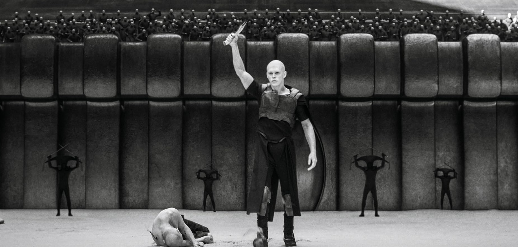 오랜만에 등장한 거니 할렉(조쉬 브롤린)도 앞 사람이 계속 조용히 하라고 주의를 주는데도 '지금 아니면 이 얘기를 다 할 시간이 없어! 나도 몇 장면 안 나온단 말이야!' 라고 항변하듯 '진행을 위한' 대사들을 토해냅니다. 심지어 최강 빌런인 페이드 로타 하코넨(오스틴 버틀러)의 잔혹함과 강력함을 보여주려 힘을 준 흑백 콜롯세움 신도 별 임팩트 없이 '자, 이놈이 얼마나 싸움도 잘 하고 무지막지한 놈인지 보셨죠?' 하는 식으로 매우 무성의하게(진심입니다) 처리됩니다. 그냥 필요하니까 넣은 장면이라는 식입니다.