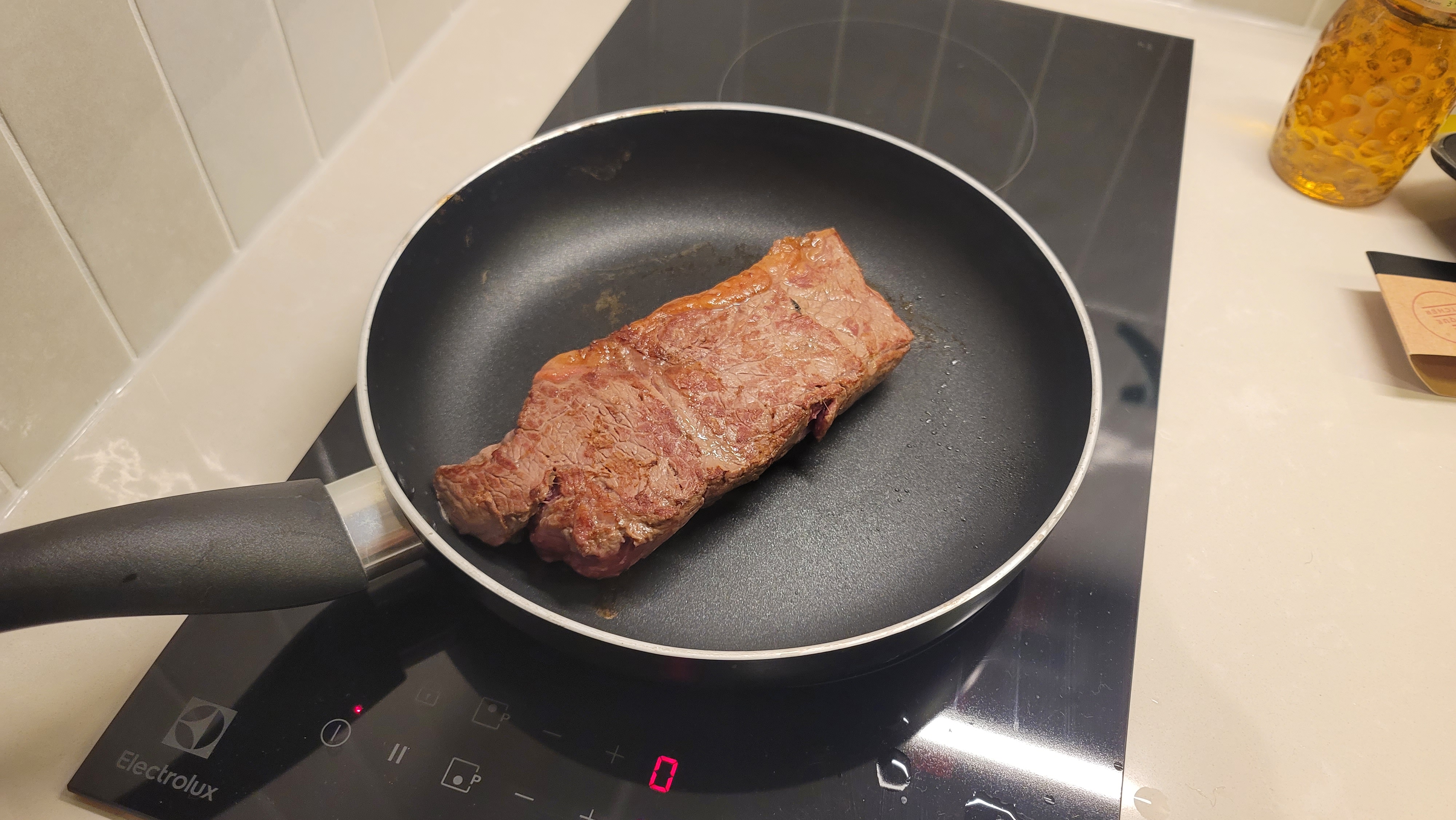 저녁에는 밥을 먹을 일이 있을 때 두 번 고기를 구워 먹었다. 꽃등심(faux filet, 립아이에 해당하는 프랑스 명칭이다) 기준으로 봉마르셰에서는 250g13유로, 마트에서는 280g11.29 유로에 샀다. 국내와 차이가 있다면 곡물 사료 대신 풀을 먹여 기른 소라 마블링이 거의 보이지 않는데, 그렇다고 해서 고소한 맛이 없는 것은 결코 아니다.