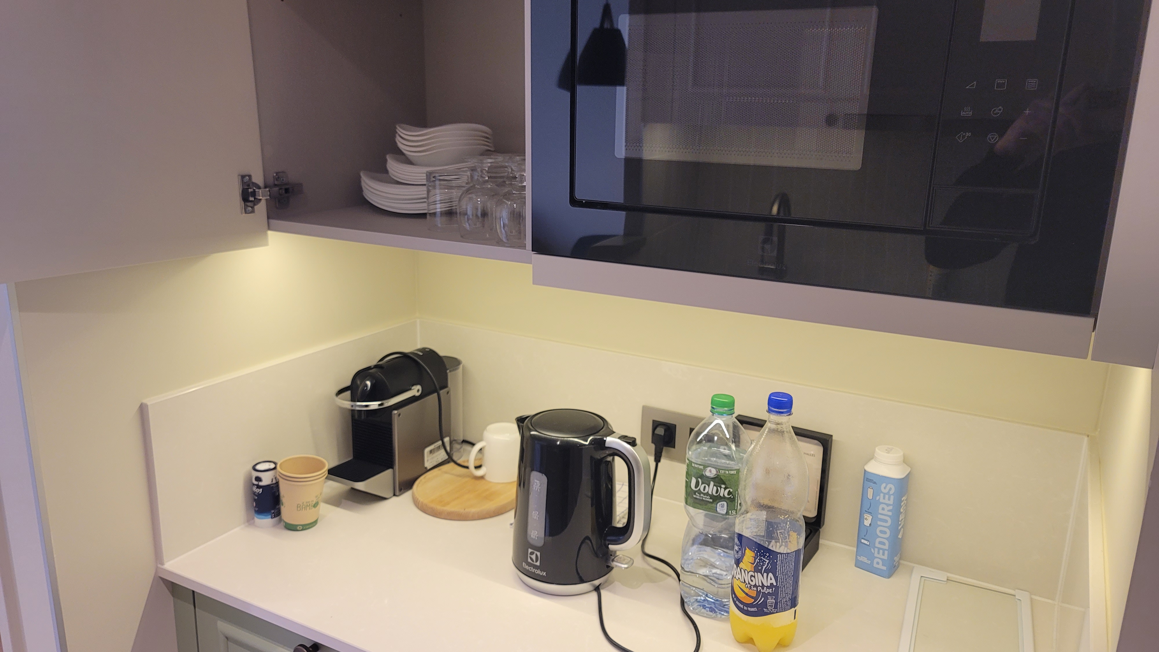 곡절 끝에 호텔 앞 도착. 시타딘 레알 (Citadines Les Halle). 시타딘은 프랑스에서는 꽤 유명한 레지던스 형 호텔 체인이다. 절대 럭셔리한 느낌은 아니고 그냥 생활감있는 한국의 콘도 같은 느낌. 2구짜리 인덕션 레인지가 있고, 냄비 후라이팬 칼 접시 등 주방 살림 일습이 있다.