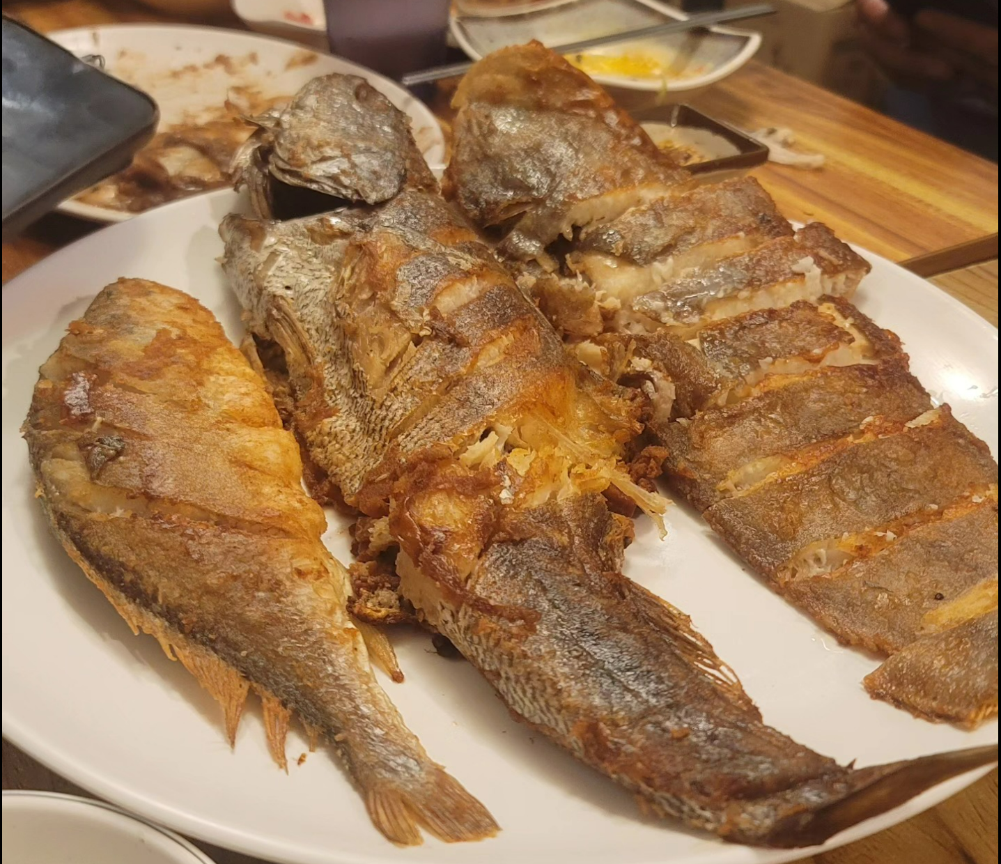추가로 생선구이. 서대, 좀 작은 민어, 조기가 나온다. 괜히 이름만 드높아서 여수 가는 사람들이 먹어 보고 실망하는 군평선이는 필요 없다. 앞으로도 여수 가시는 분들, 맛이 없는 것은 아니나 뼈만 많고 살은 한 숟가락인 군평선이를 그 가격에 먹느니 다른 맛난 생선들을 잔뜩 드시길.