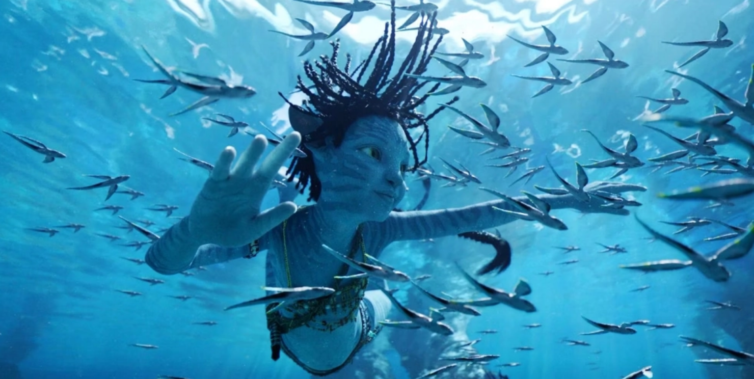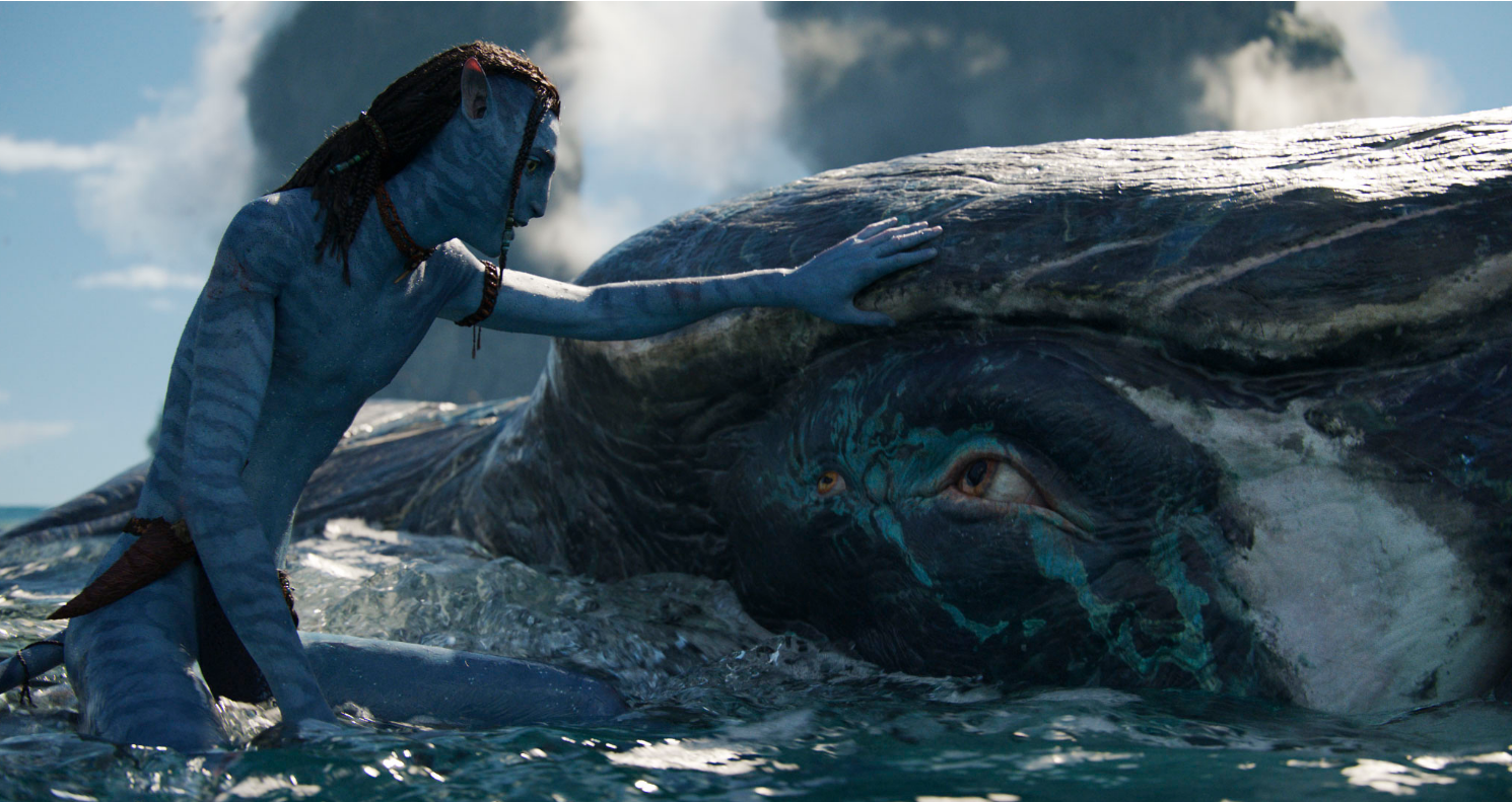 4. 보시다시피 <아바타2>의 이야기 구조에는 큰 매력 포인트가 없다. 14년을 기다린 팬들에게 풀 떡밥은 <WAY OF THE WATER>라는 부제답게 끝없이 펼쳐지는 대양 생태계와 그 속에서 함께 헤엄치는 나비족들의 화려한 모습, 그리고 새로 도전해 온 인간들과의 치열한 전투 정도다. 그렇다. '볼거리'에 대한 만족이 <아바타2>에 대한 당신의 만족도를 결정한다. 그 밖의 것은 없다.
