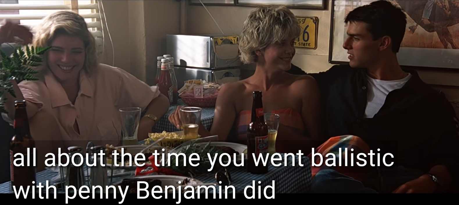 톰 크루즈의 현 여친 앞에서 '페니 벤자민'이라는 구여친 실명을 언급하는 멕 라이언. 이런 만행이...
