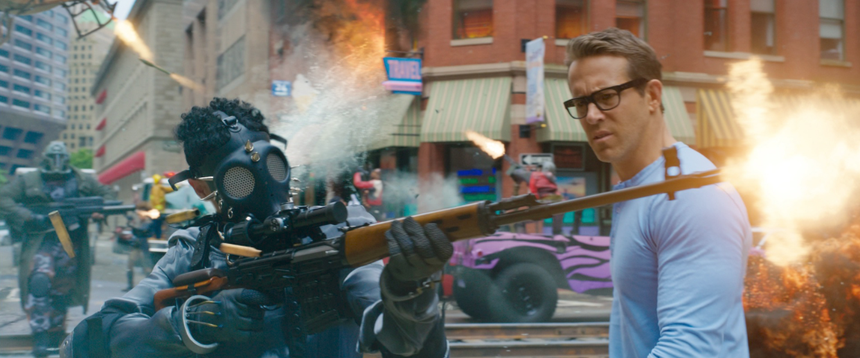 <프리 가이>의 주인공 가이(라이언 레이놀즈)는 프리 시티에서 은행원으로 살고 있다. 은행 업무를 수행하긴 하지만 주 업무는 ‘선글라스 낀 남자(혹은 여자)’들이 총을 들고 은행에 나타났을 때 아무 저항도 하지 않고 바닥에 엎드리는 정도다. 프리 시티에서 선글라스는 초인류의 상징이다. 그들은 은행을 털어도, 사람을 죽여도, 차나 건물을 파괴해도 아무 문제가 되지 않는다. 그들이 돈을 내고 게임을 해야 이 게임이라는 세계가 의미가 있는 거니까.