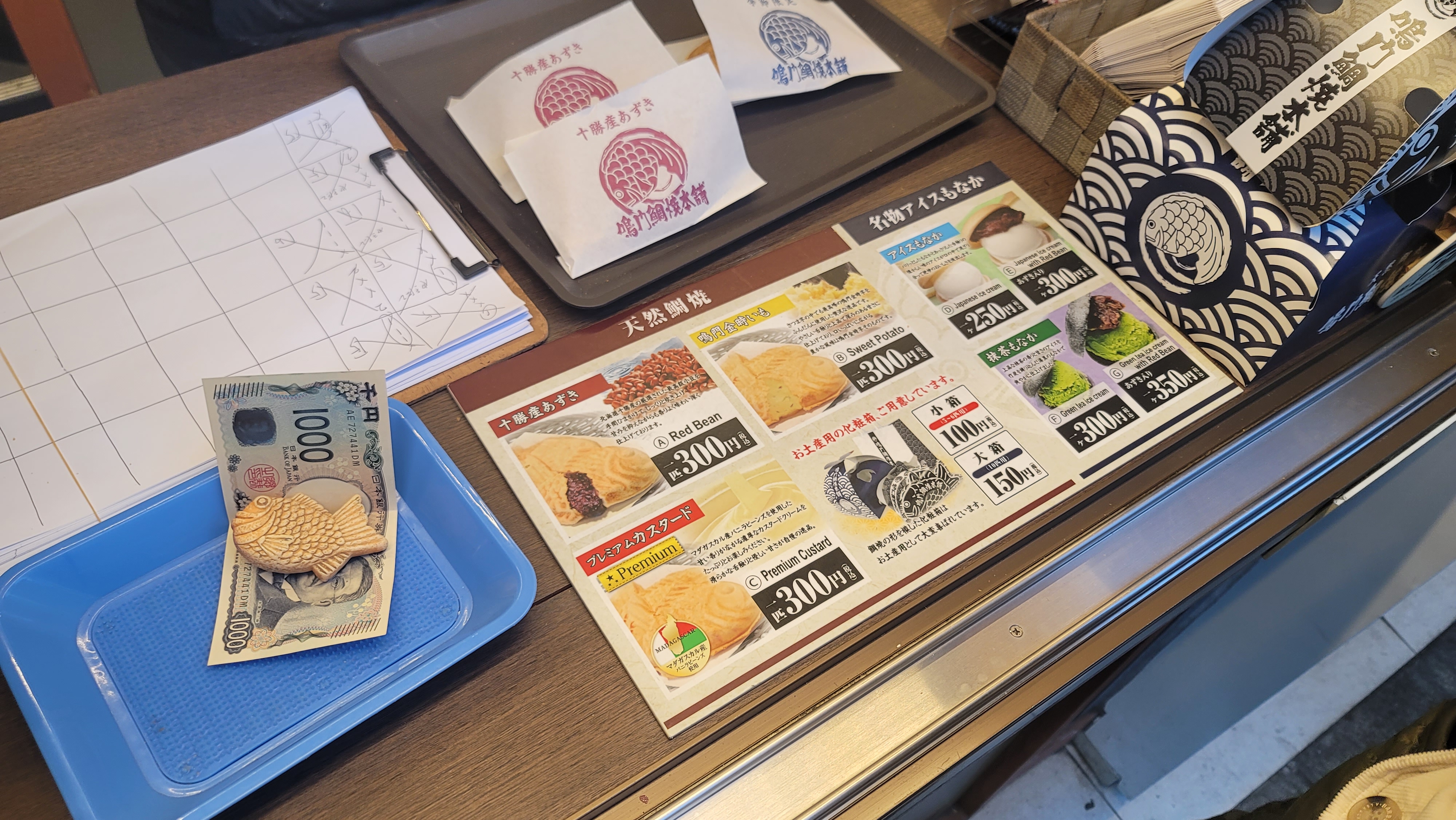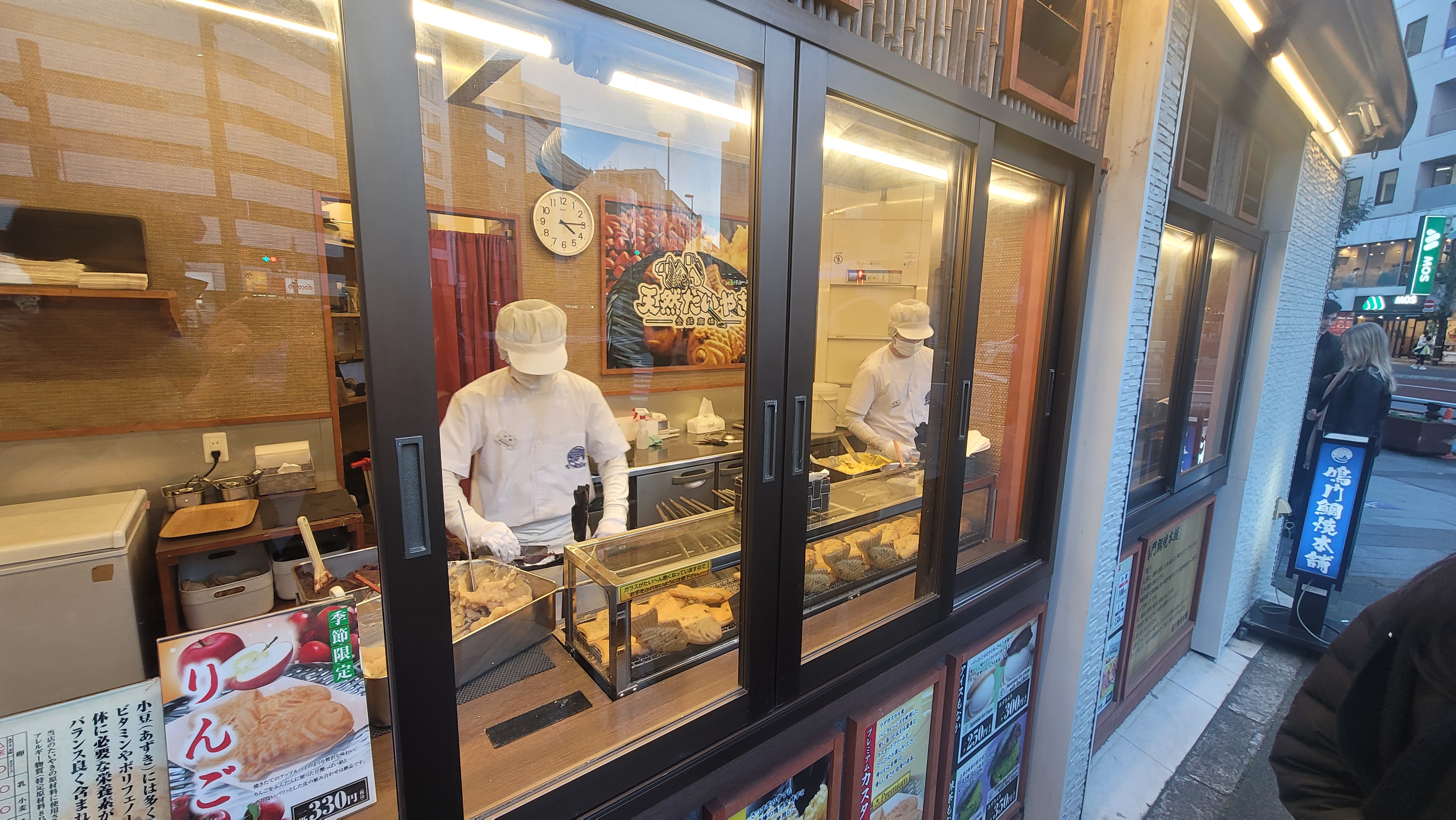 돔과 붕어의 몸값 차이가 있으니, 한국의 붕어빵과 일본의 타이야키는 몸값 차이가 어마어마하다. 팥, 고구마, 크림이 든 타이야키는 300엔. 계절 한정 상품인 사과가 든 것은 330엔.