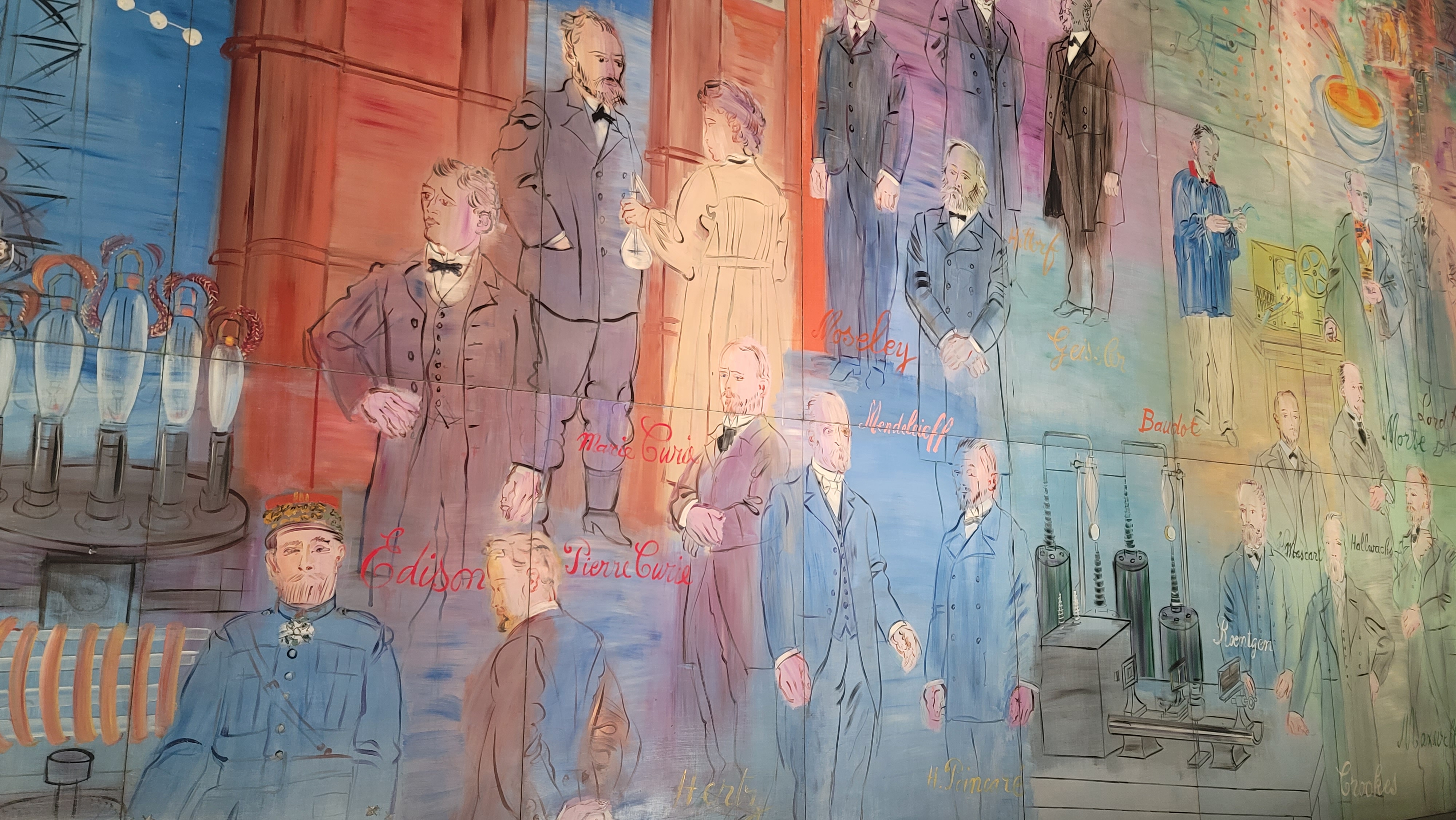 잘 보면 수십명의 인물들이 있다. 무식해서 다 알지는 못하지만 20세기 과학문명을 이룩하는 데 기여한 과학/공학자들이라는 것은 대략 짐작할 수 있다.