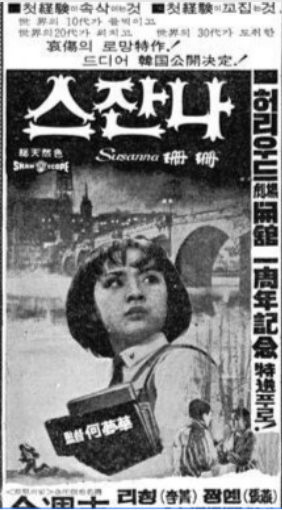 아마도 추측컨대 - 물론 이 추측이 진짜 이유인지 확인해 줄 사람은 아마도 생존자 중에는 없을 것으로 생각되지만 - 1967년작인 또 다른 홍콩 영화 <스잔나> 때문일 것이라는 생각이 듭니다. <사랑의 스잔나>와 구별을 위해 <리칭의 스잔나>라는 제목으로 불리곤 하는 이 영화는 1970년 한국에 수입되어 무려 43만 관객을 동원하는 엄청난 성과를 거뒀습니다.