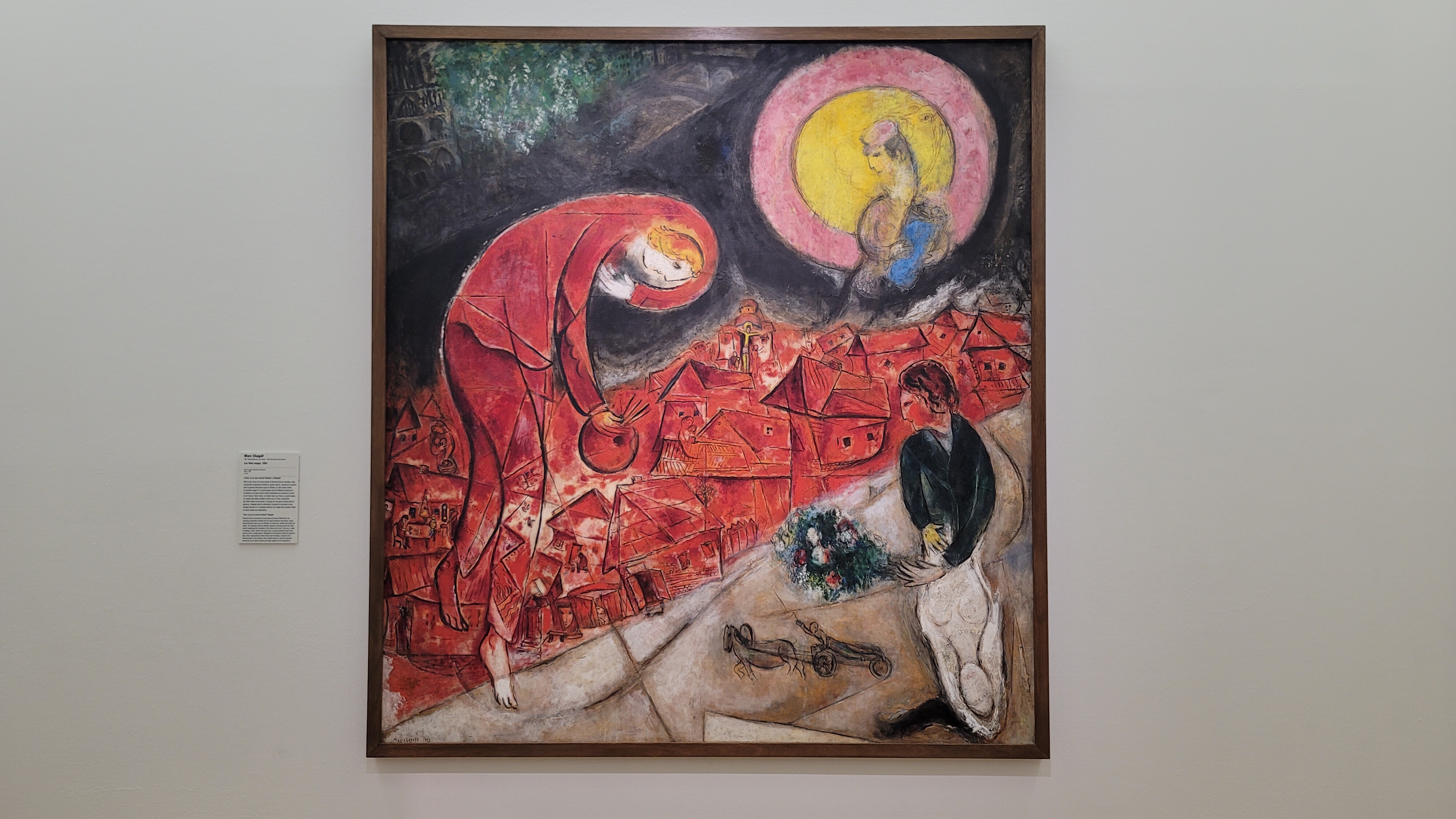<빨간 지붕 Les Toits rouges>, 1953. 달 아래 보이는 건물이 노틀담이라고 한다. 벨라루스 출신이면서 "파리는 제2의 비쳅스크(자기 고향)"라고 말했던 샤갈이 파리를 그린 그 수없이 많은 그림들 중 하나.