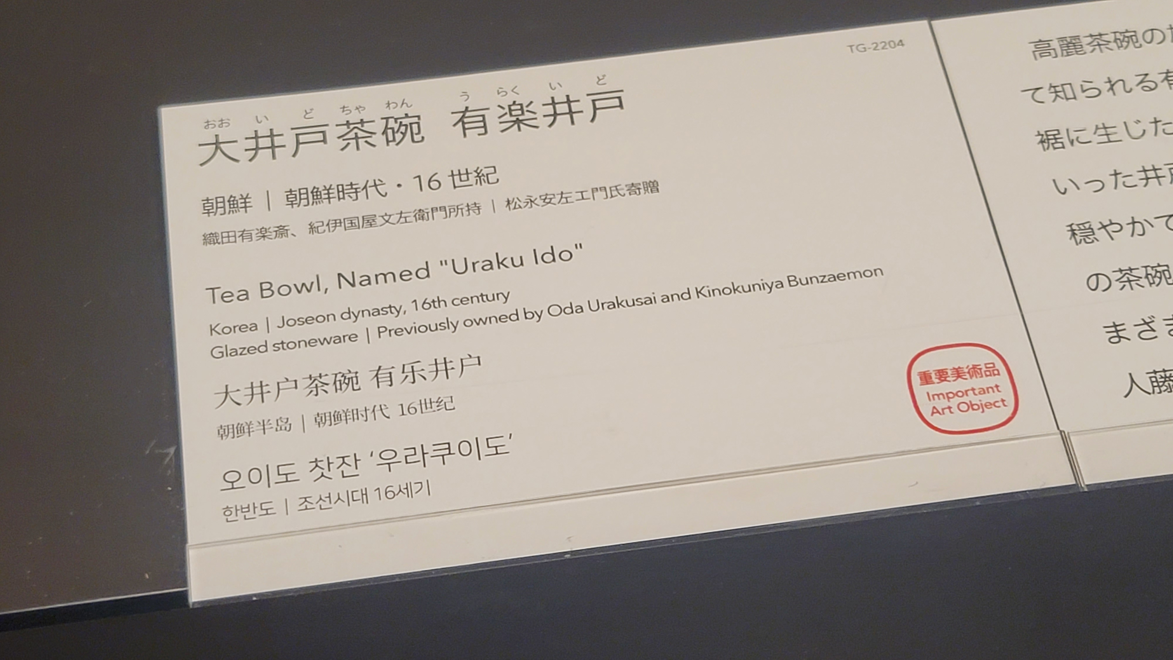 그리고 모든 유물의 설명이 일본어, 영어, 중국어, 한국어로.
